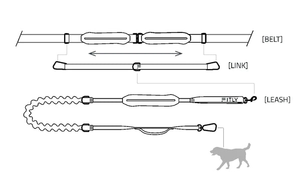 WHETHER YOU RUN, WALK, CANICROSS, OR JUST TAKE A STROLL IN THE PARK, FITLY RUNNING BELT + LEASH HAS A CLEVER MODULAR APPROACH TO EVERY ACTIVITY!