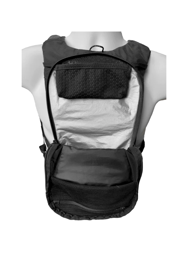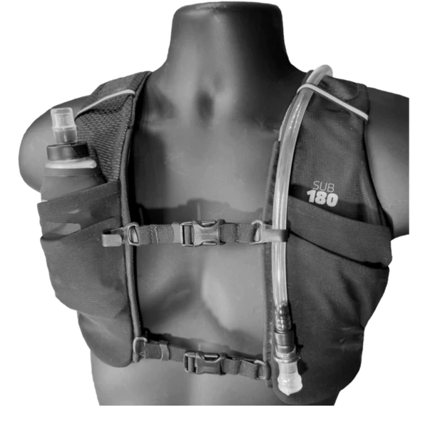 Included with all Sub180: a 1.10 L - 37 oz ingeniously designed Low Profile soft bladder and a 250 ml - 8.5 oz - soft flask in the front pocket. Contrary to traditional bladders, Sub180's custom bladder is super thin and malleable to fit your body contours. It shrinks as you drink, reducing sloshing and is so thin, it is barely noticable.