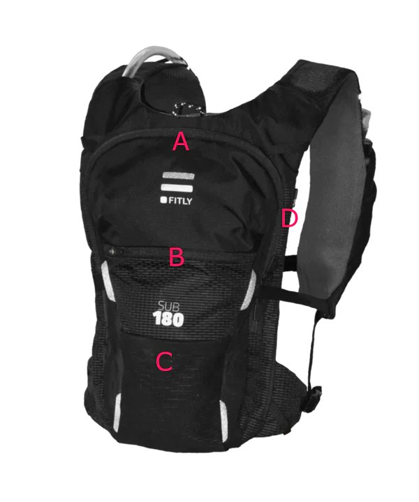 When compared to FITLY's previous packs, Sub180 has a massive storage capacity! The main pocket is made from a super resitant Tyvek panel on the inside and a weather resistant rip stop fabric on the outside. Definitely ready to stach all your running adventure accessories.